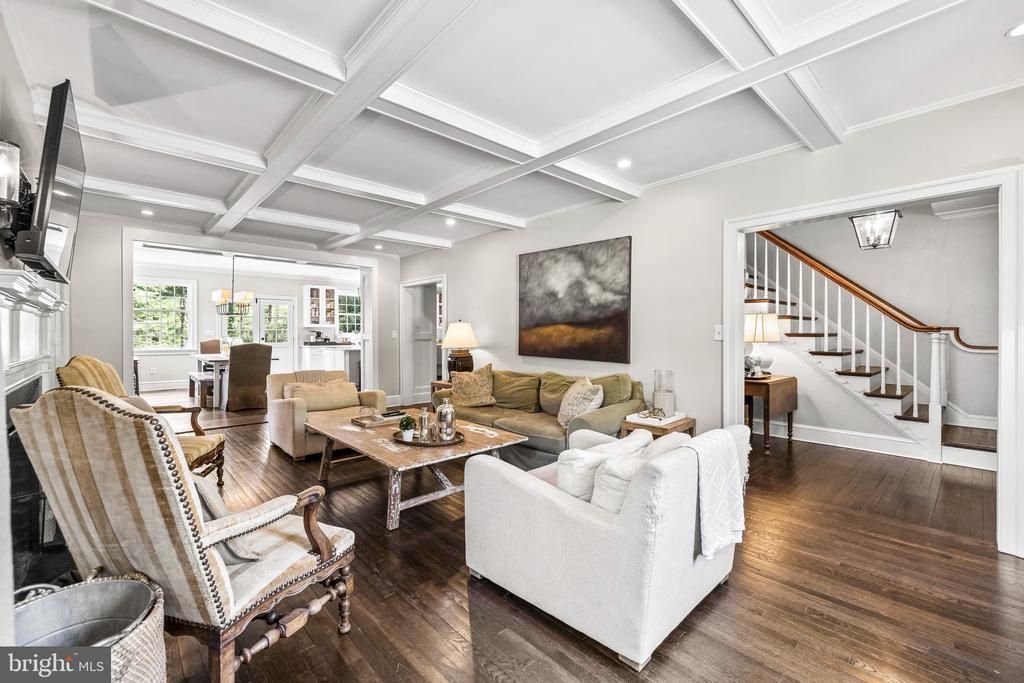 This beautifully renovated 1949 Cape Cod offers timeless charm paired with modern updates, set on a picturesque 2.4-acre property. The traditional floor plan features a welcoming foyer with an elegant staircase, a gracious living room anchored by an oversized fireplace & coffered ceiling, and dining room just off the kitchen with beautiful millwork. The expansive kitchen is a true centerpiece, showcasing crisp white cabinetry, a large center island, gas range, and a bright breakfast area with French doors opening to a bluestone patio, seamlessly blending indoor and outdoor living. Additional highlights include the former one-car garage thoughtfully converted into a cozy family room or exercise space, the versatile the 4th bedroom or office with access to a full hall bath, convenient first-floor laundry and a mudroom with a wet bar, designed for both function and entertaining. The first-floor primary suite is a private retreat, complete with dual walk-in closets and an oversized bay window that fills the space with natural light. Upstairs, you’ll find two generously sized en suite bedrooms, offering comfort and privacy for family or guests. There is a workshop/shed off to the side of the house. This home is full of character and "charming, charming, charming."