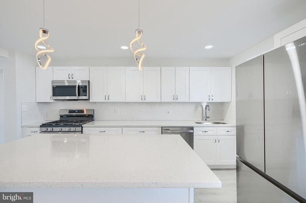 Wake up every morning, and say, I can’t believe I live in this amazing home! Open layout! Gorgeous kitchen with oversized Quartz countertop and island, coordinating backsplash, wood shaker cabinets, and stainless steel appliances. Upstairs dual entry bath is elegant and comfortable, with custom Calacatta tilework and designer plumbing and lighting fixtures, plus a spacious closet. Direct access from Master Bedroom to bathroom. Bedrooms feature extra wide closets with sliding mirror doors. Fully finished basement features a family room and 4th bedroom which has a private full bathroom with custom tile shower. And it is on walkout level, with quick access to the multi-car driveway. This home has a front porch, and a new large deck, fenced in yards, coordinated lighting and plumbing fixtures, new doors interior and exterior, recessed lighting, new HVAC system, Luxury vinyl plank flooring. You will love this home.