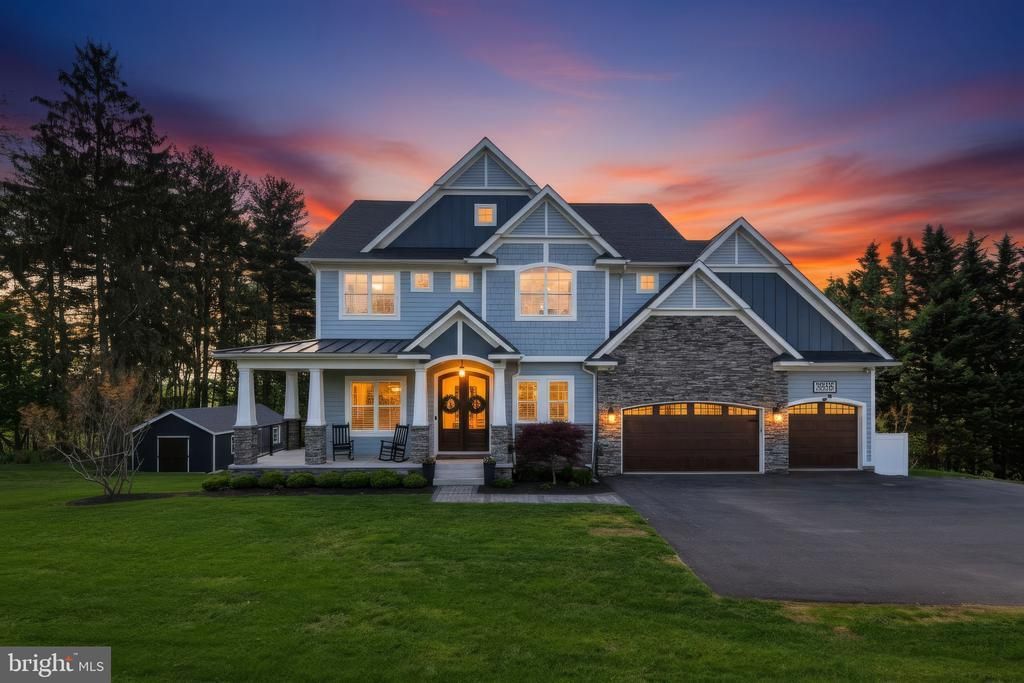UNIQUE OFFERING SHOWCASING CUSTOM CRAFTSMAN DESIGN AND IDEAL LOCATION CLOSE TOWN W/ ALL AMENITIES AND PRIVACY AND SECLUSION. Stunning Craftsman custom home featuring high-end finishes, thoughtful design, and exceptional energy efficiency throughout. The open main level showcases a dramatic 10-foot island, stone range hood, and a smart walk-in pantry with motion lighting. Enjoy premium touches such as 10-foot ceilings, 8-foot interior doors, mahogany front doors, stainless Thermador chef appliances, Pecan solid wood flooring, and custom millwork. Spectacular design is highlighted by tray ceilings, coffered living room ceiling, a private office/den and pocket doors throughout. The luxurious primary suite boasts marble flooring, a custom double shower with Catoctin Mountain views, dual rain shower heads, a standalone soaking tub and expansive walk-in closet. Enjoy the convenience of dual washers and dryers, upper level 2nd and 3rd full baths. Built with durability and performance in mind, this home includes Hardie Plank siding, Azek-wrapped exterior details, 2x6 construction, Pella windows, Bryant HVAC, and Energy Star appliances. Outdoor living is equally impressive with a wraparound front porch, and a stunning rear covered deck showcasing a stacked stone gas fireplace and large screen TV, stone flooring, custom glass railings, Trex stairs, oversize stone paver patio with fire pit, and low-voltage landscape lighting. Situated on 2.27 private acres along Historic Parr’s Ridge enjoy sweeping Catoctin mountain views from all three levels. The property offers an expanded 3 car finished garage, smart home integration, indoor/outdoor speakers. This location offers walking distance to Parr’s Ridge and Mt Airy Elementary plus Mt Airy Middle schools and downtown Historic Mount Airy. SUMMARY OF EXCEPTIONAL UPGRADES AND FEATURES AVAILABLE